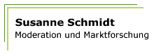 Durch den Einsatz von Cookies kann die Susanne Schmidt - Moderation und Marktforschung den Nutzern dieser Internetseite nutzerfreundlichere Services bereitstellen, die ohne die Cookie-Setzung nicht möglich wären.
